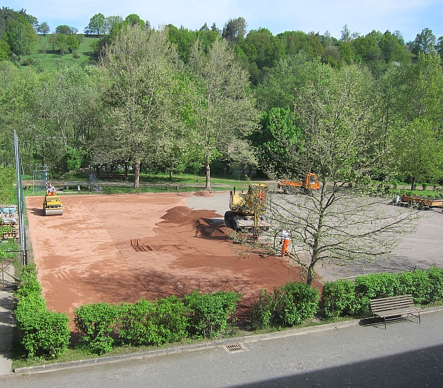 Mitte Mai 2012 war endlich es soweit: unser Sportplatz, der von den Hortkindern gern als Fußballplatz genutz wird, bekam einen neuen Belag. Nun besteht nicht mehr die Gefahr, dass man sich bei einem Sturz an großen Schottersteinen verletzt. Vielen Dank an das Schulverwaltungsamt des SHK.