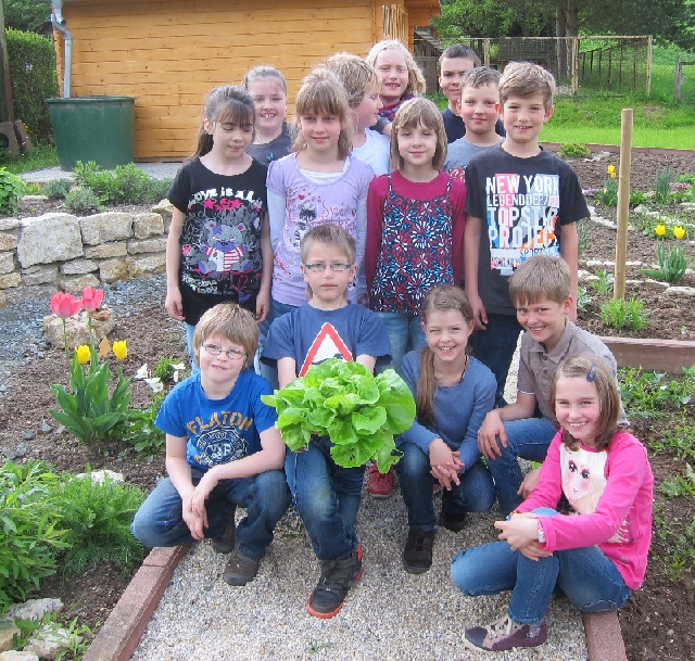 Die 1. Ernte im neuen Schulgarten