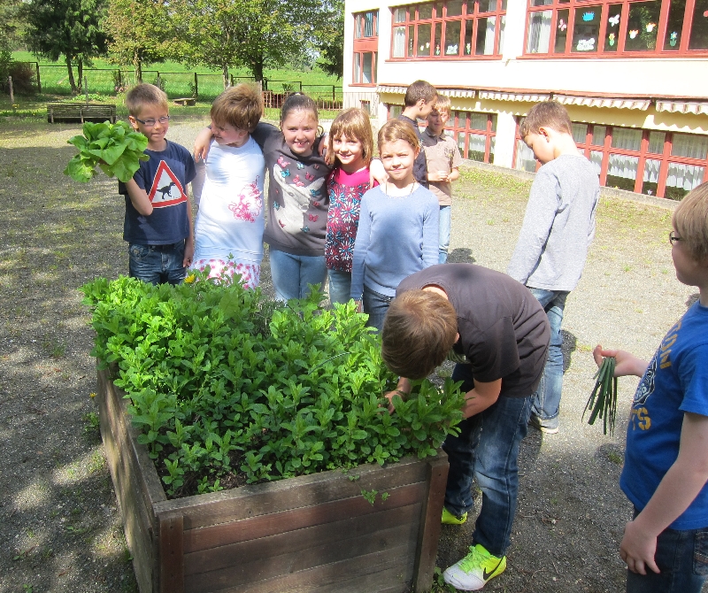 Die 1. Ernte im neuen Schulgarten