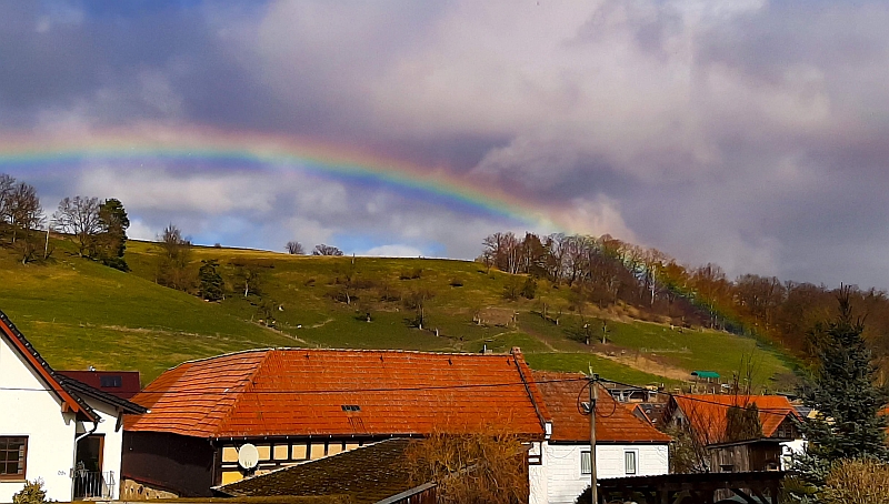 Auf dem Weg zum Schulbus konnten wir am Faschingsdienstag einen tollen Regenbogen sehen, dessen Ende gleich auf der Wiese in Ottendorf zu sein schien. Das Bild ist keine Fotomontage – Ehrenwort!