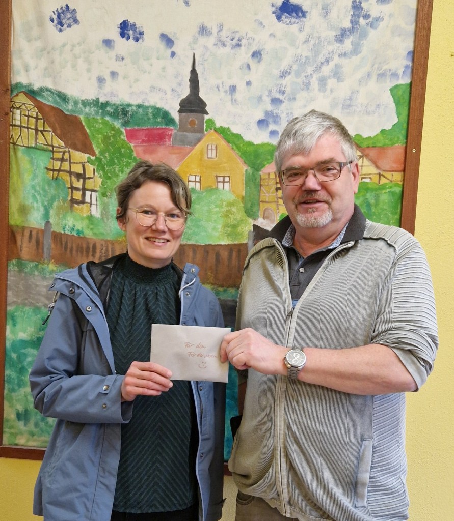 Frau Wöllner aus Ottendorf überreichte unserem Schulförderverein eine Spende in Höhe von 280 Euro aus dem Erlös ihrer Pflanzentauschbörse.