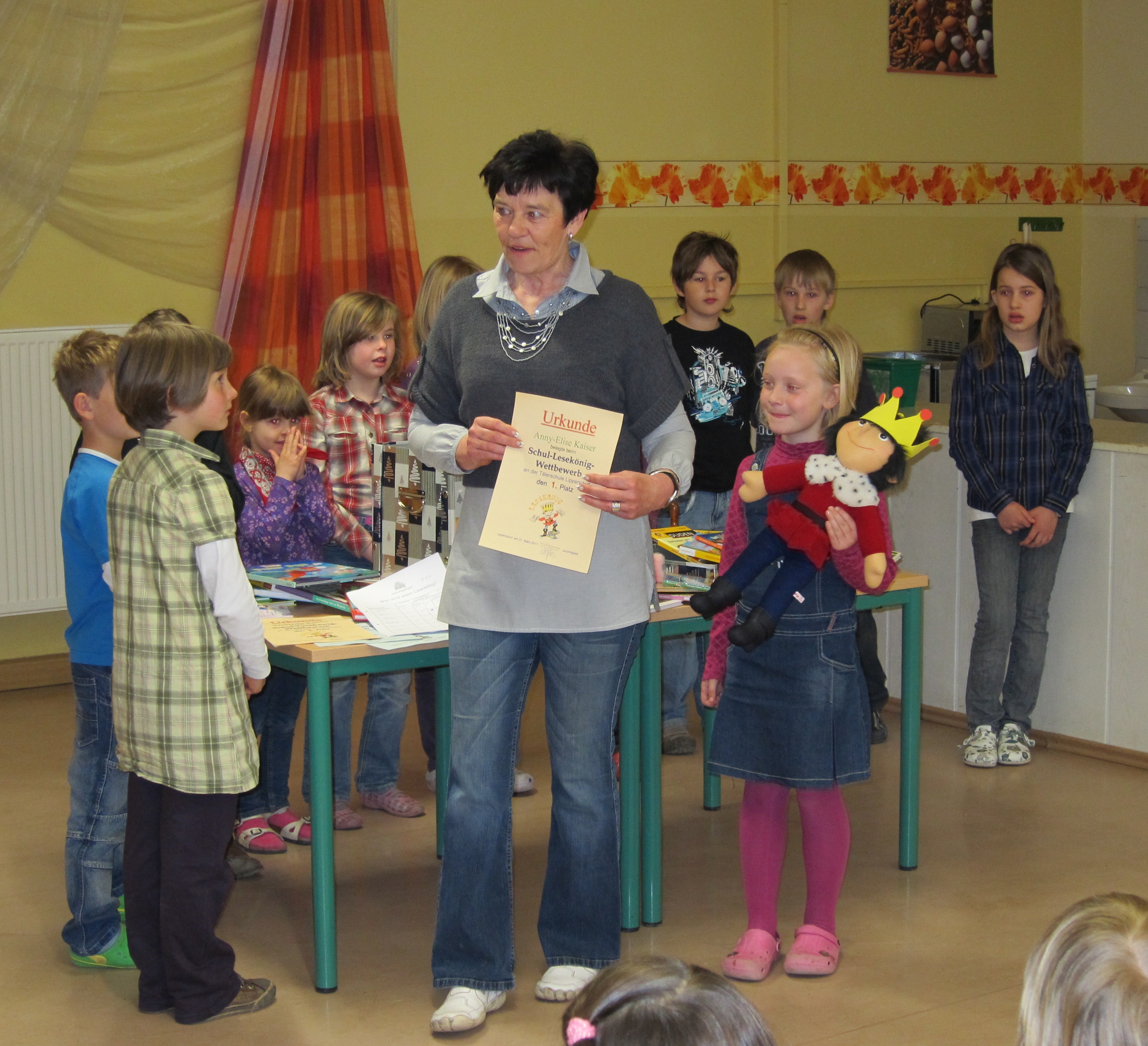 Auch in diesem Jahr gab es wieder einen Vorlesewettbewerb an unserer Schule. Nachdem in jeder Klasse der Klassenlesekönig und 3 Platzierte ermittelt wurden, traten dann die Sieger der Klassenlesewettbewerbe beim Schullesekönig-wettstreit an. Eine Jury aus Lehrern, Eltern und Schülern entschied, wer bei Schullesekönig die besten Leistungen erreichte. Die Teilnehmer mussten sich im Gedichtvortrag, im Lesen eines unbekannten Textes und im sinnerfassenden Lesen schlagen.