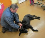 Herr Walther kam mit seinem Hund Rudi zu Besuch in unsere Schule.
