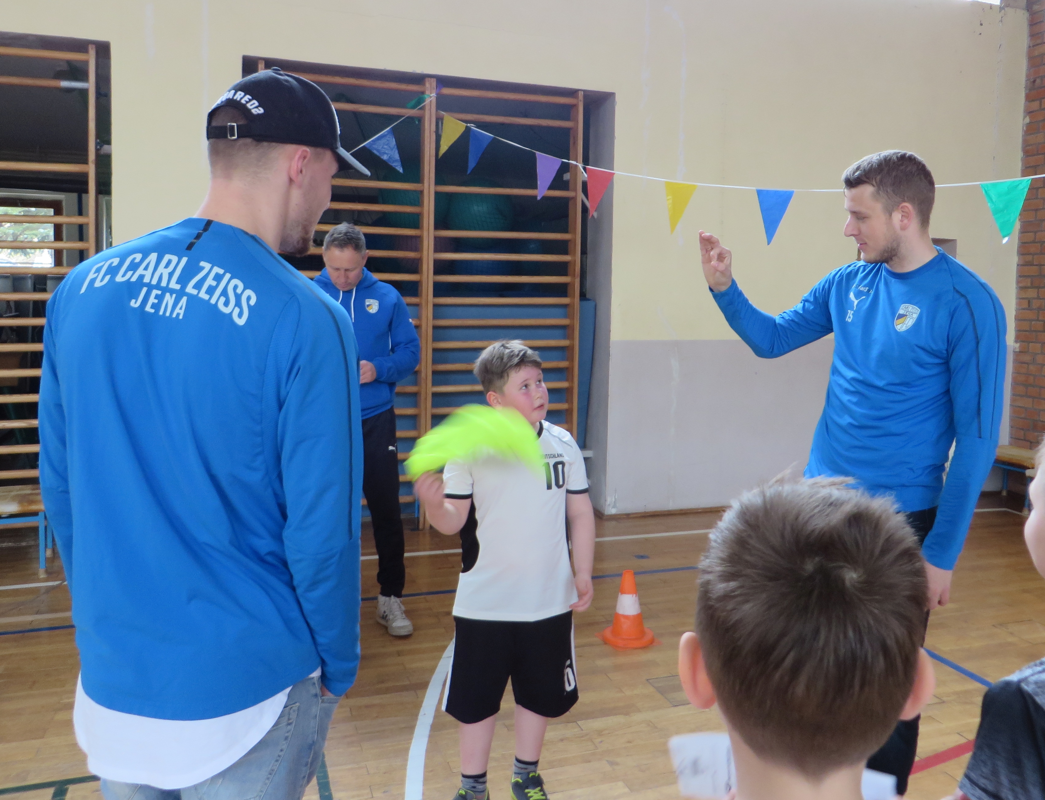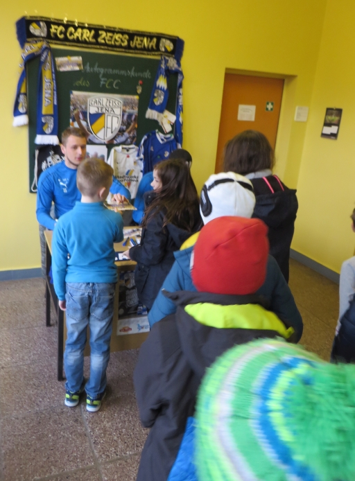Große Aufregung herrschte am 1. März, als der Kleinbus des FC Carl Zeiss Jena auf dem Schulhof parkte.