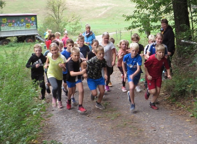 Nachdem der erste Crosslauftermin wegen Regen verschoben werden musste, war es dann am 16.9. soweit. Alle Schüler der Tälerschule versammelten sich am Rande der „Heischbach“, dem Start unserer traditionellen Crosslaufstrecke. Nach einer Erwärming ging es klasenweise los. Am Ende hatten sich alle kleinen Sportler angestrengt, die ganze Strecke laufend zurückzulegen und konnten zufrieden ihren Rückweg in die Schule antreten.