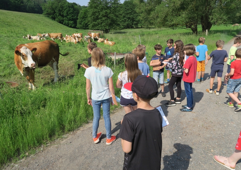 Im Rahmen des HSK-Unterrichts wurde in der Klasse 3 das Thema Nutztiere behandelt und als Anschauung bot sich ein Besuch auf der Weide der Agrargenossenschaft Ottendorf an, die zum Teil gleich an das Schulgelände angrenzt.