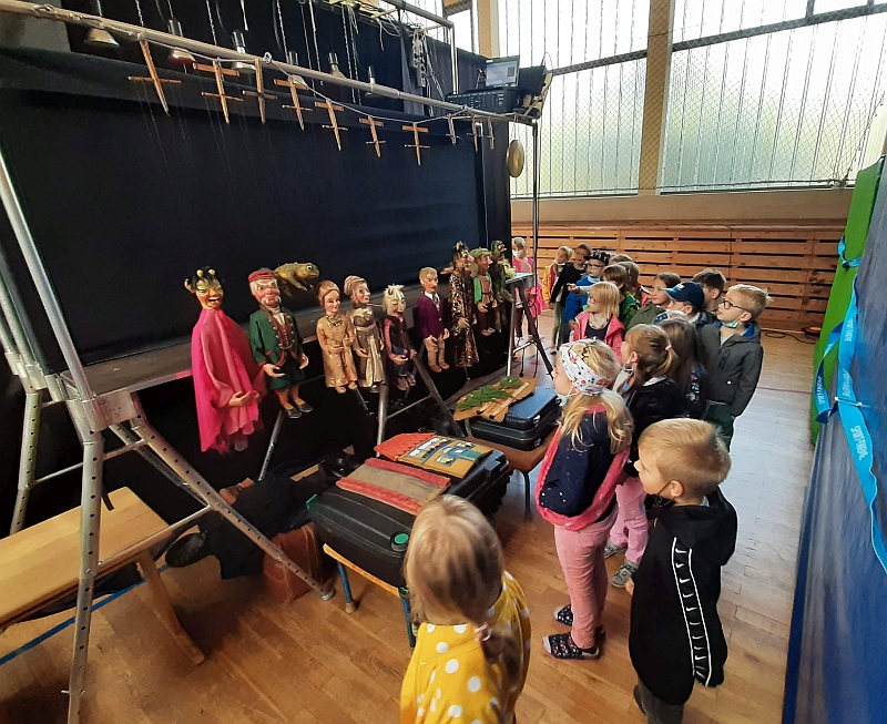 Nach zwei abgesagten Terminen war im September das Marionettentheater „Bille“ an unserer Schule zu Gast. Wir konnten das Märchen „Des Teufels 3 goldene Haare“ genießen und im Anschluss auch einmal einen Blick hiter die Kulissen der Bühne blicken.