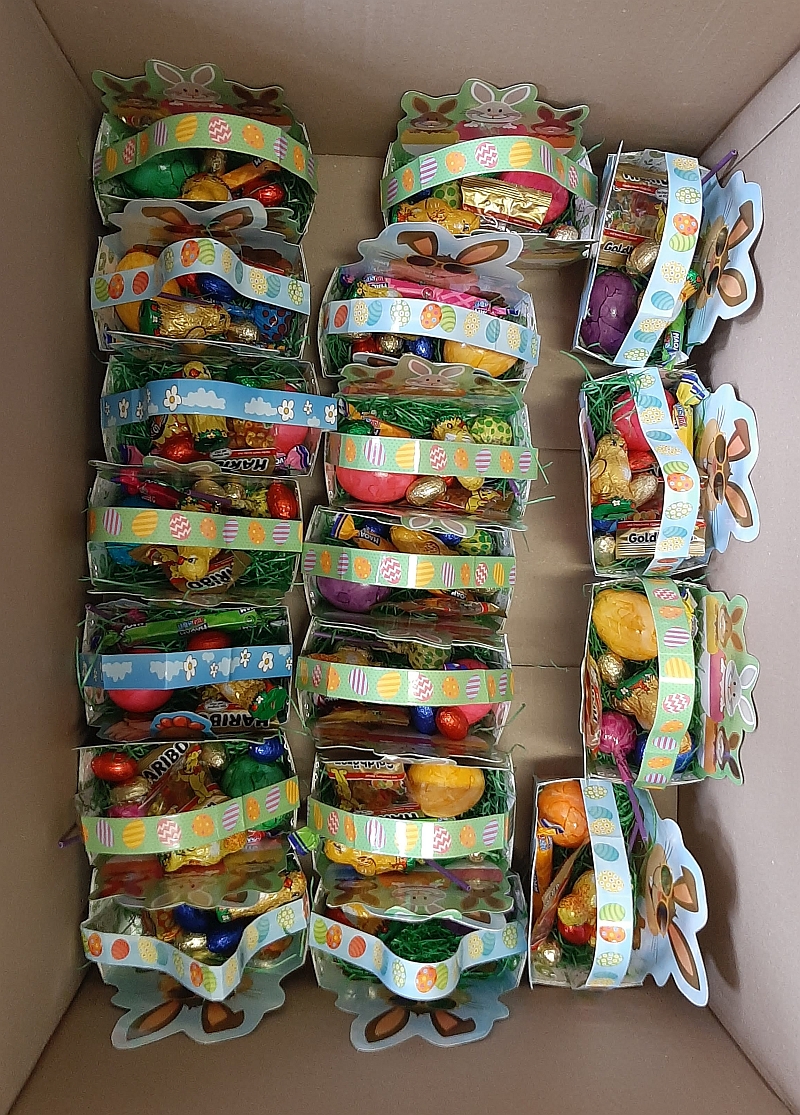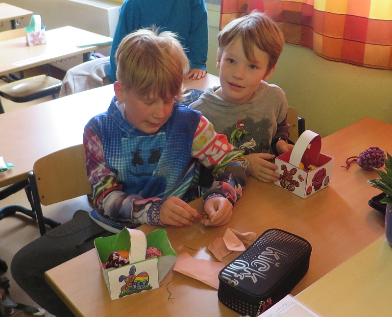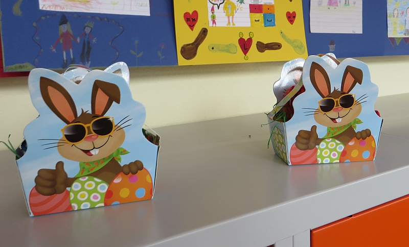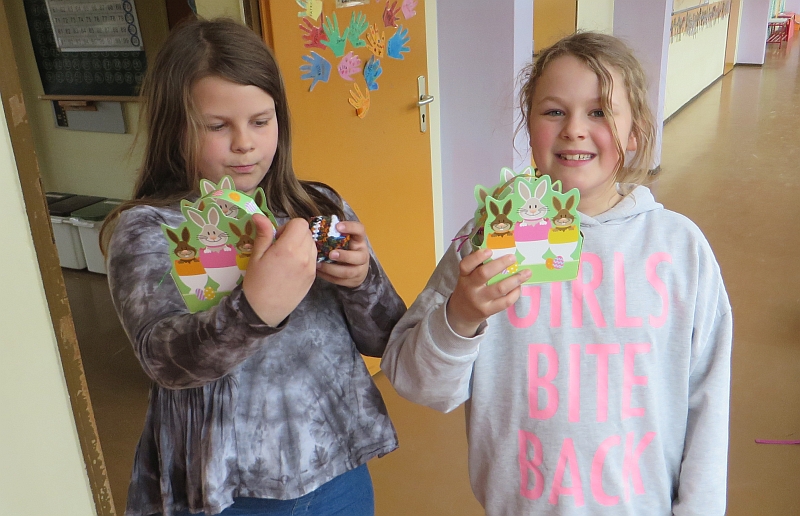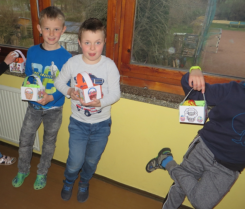 Nachdem die Kinder im Werkenunterricht jeder sein eigenes Körbchen gebastelt hatten, wurde es dann vom Osterhasen gefüllt, unterstützt von Frau Naundorf, Frau Zeinert, Herrn Hadasch und dem Schulförderverein. Die Suche fand witterungsbedingt im Schulhaus statt und sie war für manchen nicht so schnell vorbei wie gedacht. Zum Schluss bekam diesmal aber jeder sein Körbchen!