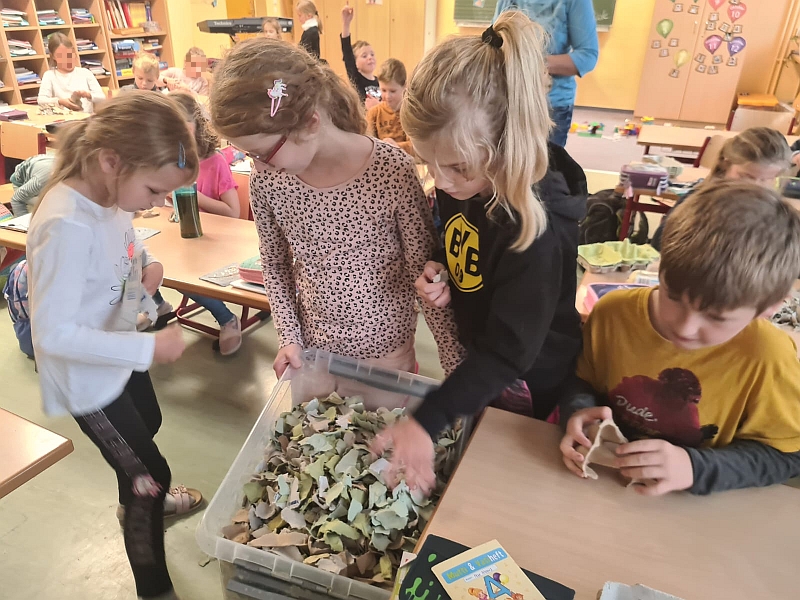 - Die Teilnehmer:innen können selbst Recyclingpapier herstellen, kennen die unterschiedlichen Siegel und stellen einen Bezug vom individuellen Papierverbrauch zum weltweiten Holz- und Wasserverbrauch her.