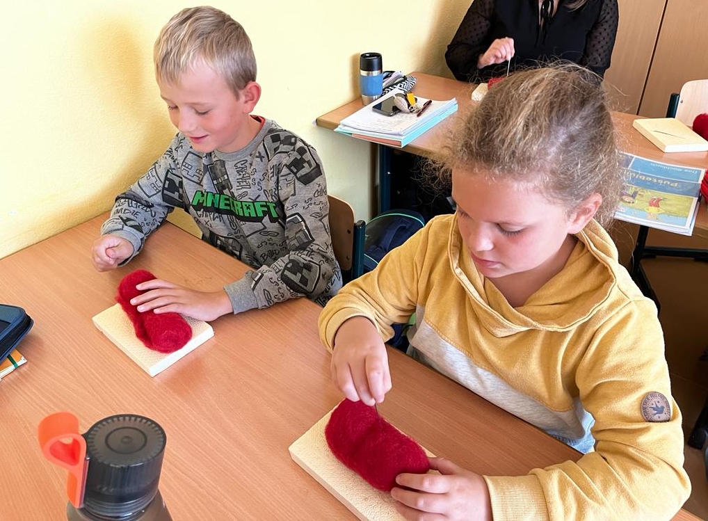 Am 26.9.2022 konnte die Klasse 3 Frau Wöllner vom Verein „ländliche Kerne“ begrüßen und mit ihr gemeinsam das BNE-Projekt „Vom Schaf zur Wolle“ durchführen: