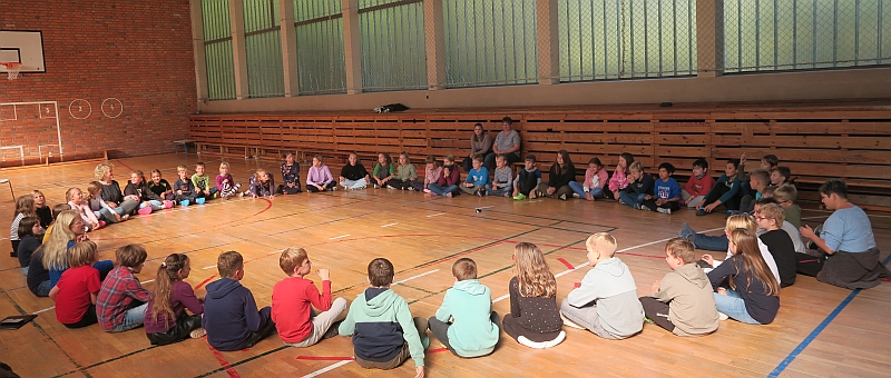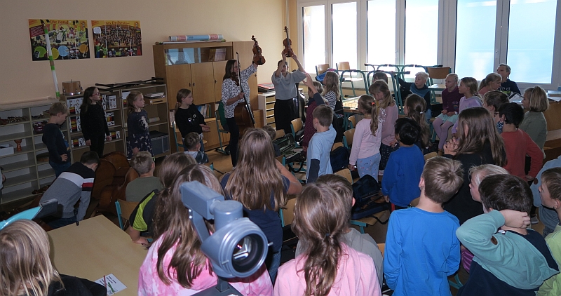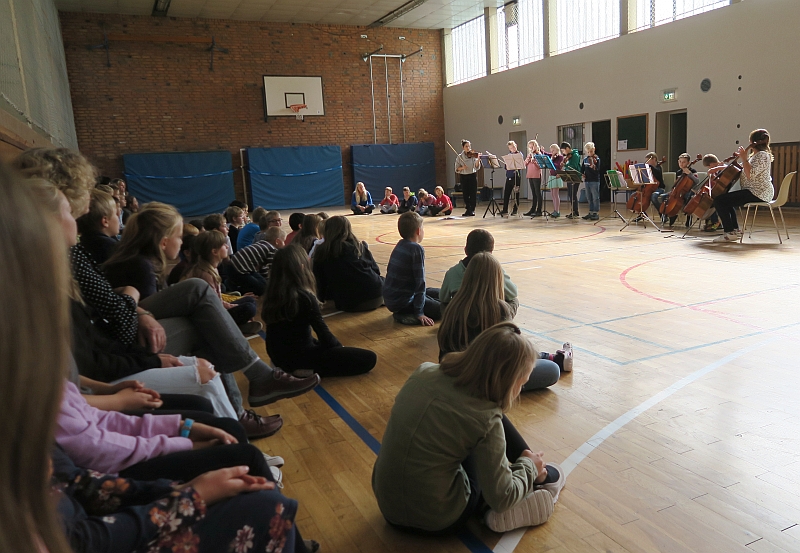 Die Kreismusikschule Stadtroda war Ende September zu Gast an der Tälerschule, um fürs Singen und Musizieren zu werben. Neben einem kleinen Chor, waren auch Musikschüler zu Gast, die ihre Instrumente vorstellten und für uns musizierten. Gemeinsam mit allen Kindern wurde in der Turnhalle gesungen und gerappt.