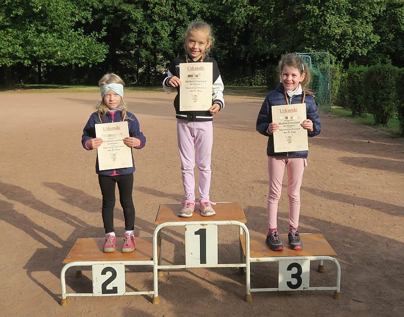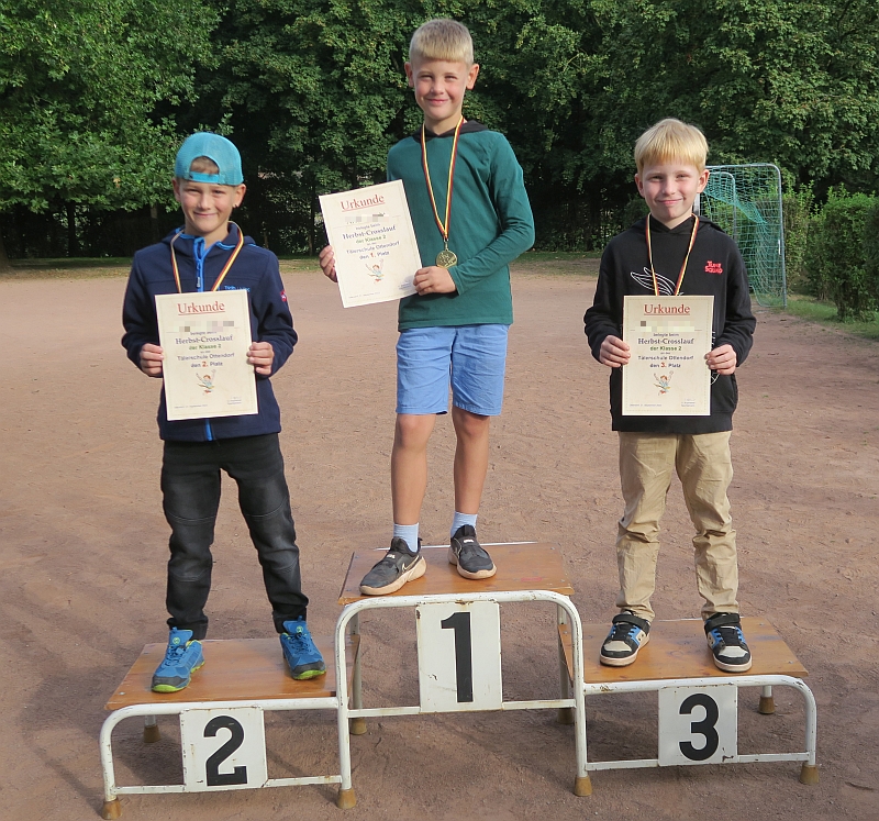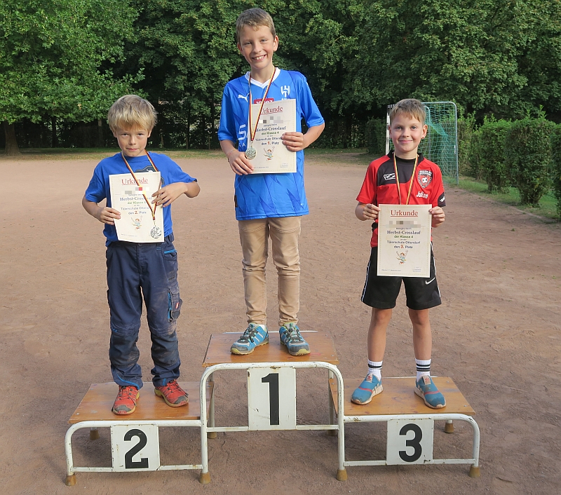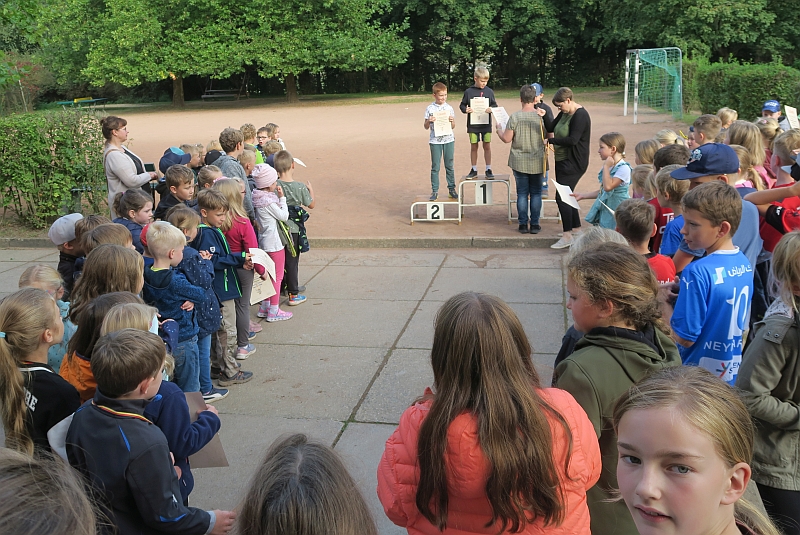 Für die Sieger gab es dann zur Siegerehrung in der Schule eine Urkunde und Dank Herrn Richer sogar eine Medaille. Einige der siegreichen Läufer dürfen unsere Schule beim Kreiscross-Lauf vertreten.
