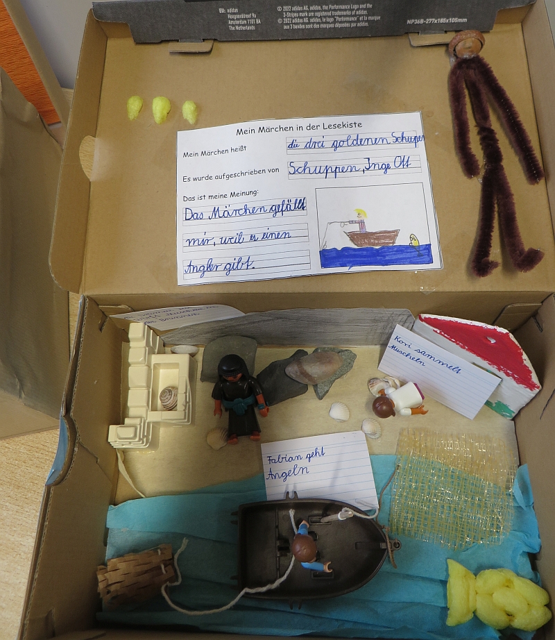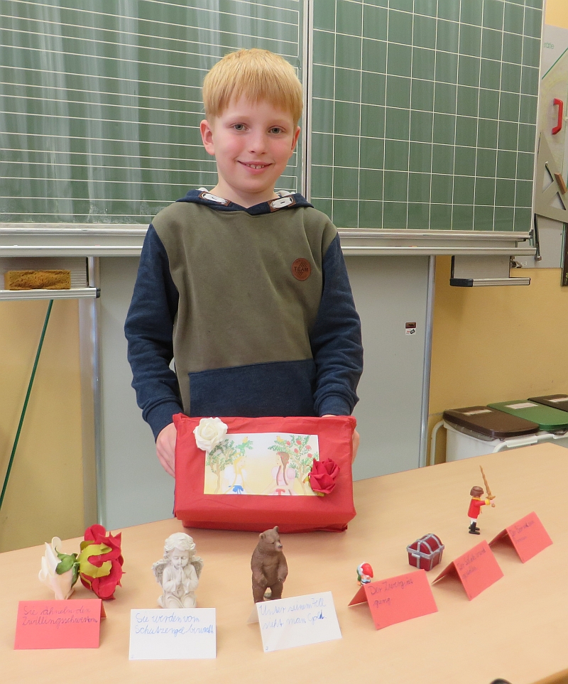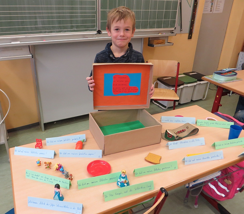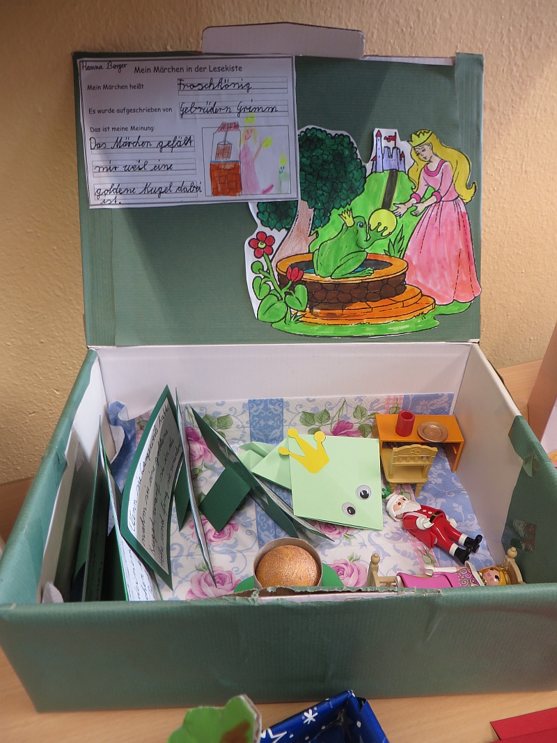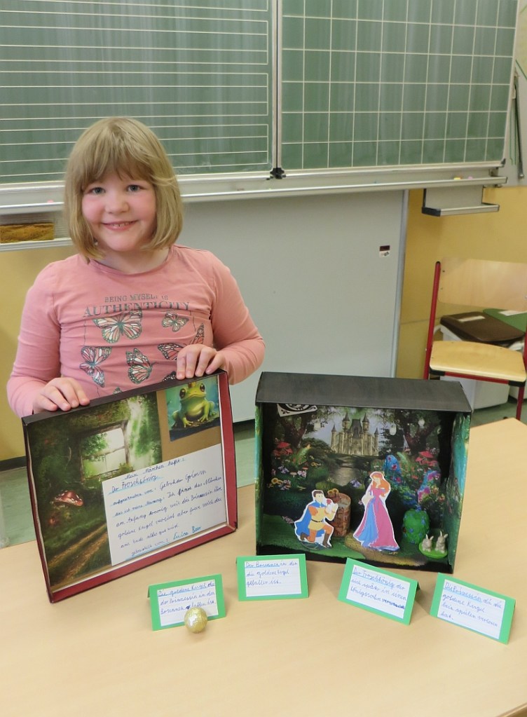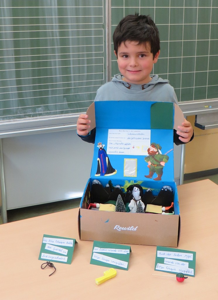 Im Januar/Februar 2024 beschäftigte sich die Klasse 2 ausführlich mit dem Thema Märchen. Zum Abschluss bastelten die Kinder gmeinsam mit ihren Eltern eine Märchenkiste, die jeweils ein bestimmtes Märchen darstellte. Die Arbeiten wurden so kreativ und liebevoll angefertigt, dass es als Anerkennung und Lob für alle Kinder eine Urkunde zum Abschluss gab.