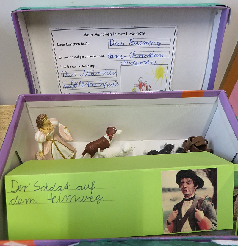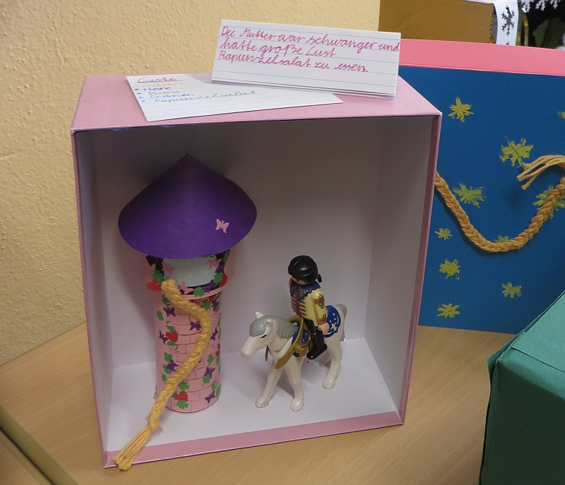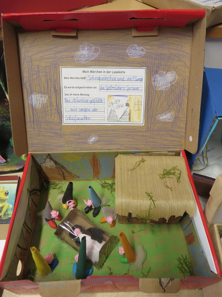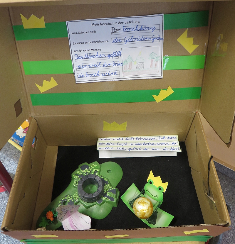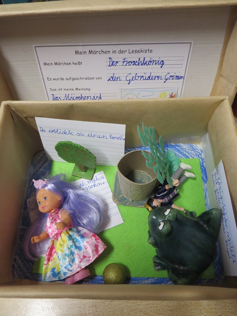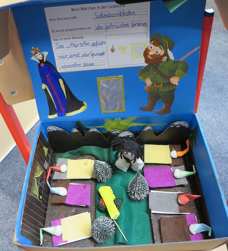 Im Januar/Februar 2024 beschäftigte sich die Klasse 2 ausführlich mit dem Thema Märchen. Zum Abschluss bastelten die Kinder gmeinsam mit ihren Eltern eine Märchenkiste, die jeweils ein bestimmtes Märchen darstellte. Die Arbeiten wurden so kreativ und liebevoll angefertigt, dass es als Anerkennung und Lob für alle Kinder eine Urkunde zum Abschluss gab.