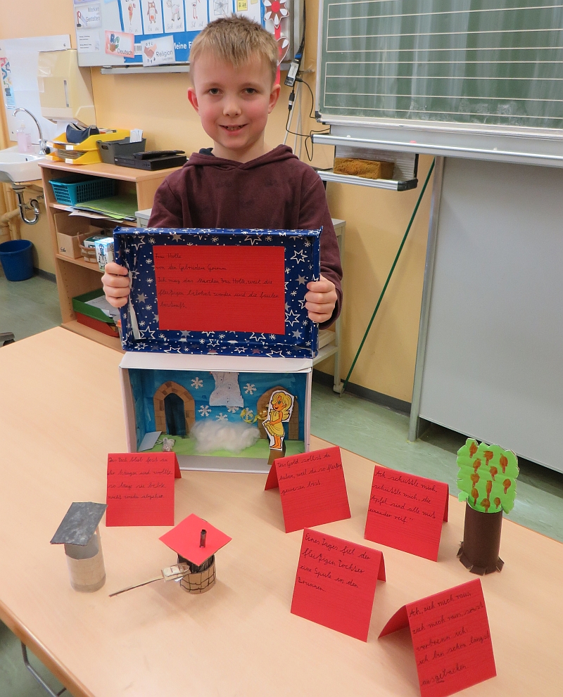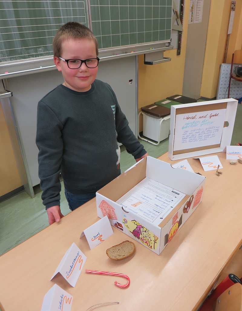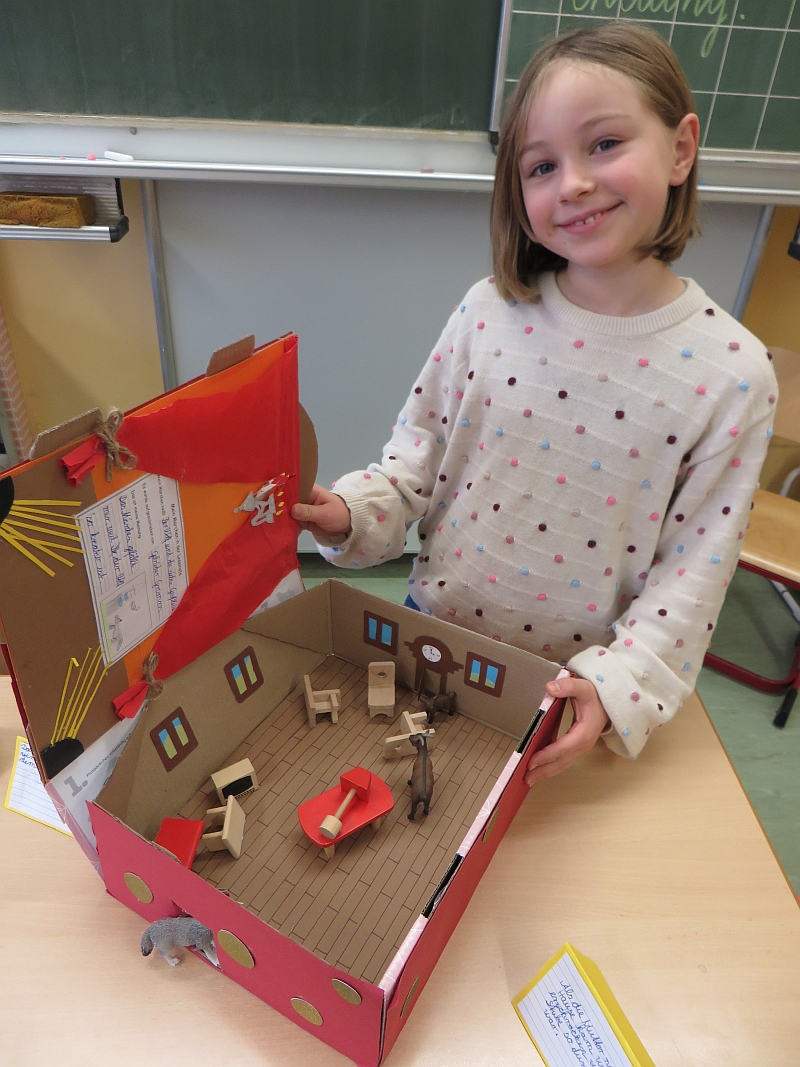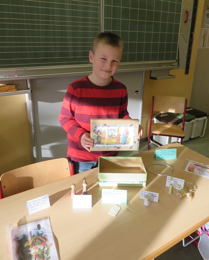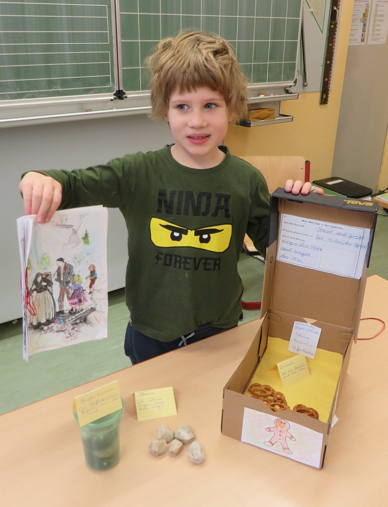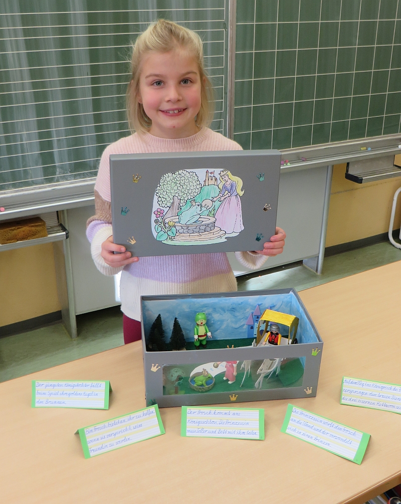 Im Januar/Februar 2024 beschäftigte sich die Klasse 2 ausführlich mit dem Thema Märchen. Zum Abschluss bastelten die Kinder gmeinsam mit ihren Eltern eine Märchenkiste, die jeweils ein bestimmtes Märchen darstellte. Die Arbeiten wurden so kreativ und liebevoll angefertigt, dass es als Anerkennung und Lob für alle Kinder eine Urkunde zum Abschluss gab.