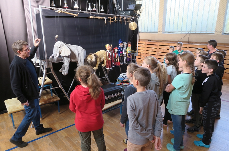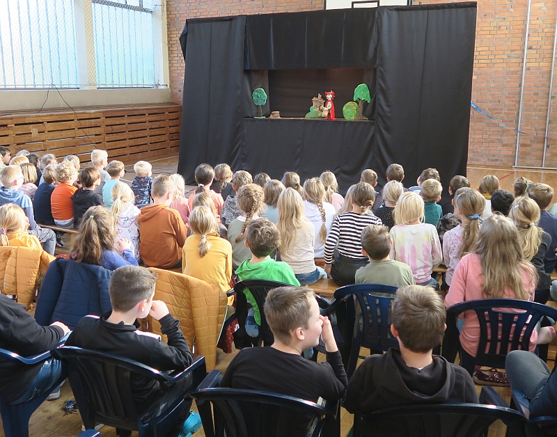 Im Oktober gab es den ersten kulturellen Höhepunkt dieses Schuljahres. Das Marionettentheater Bille gastierte an unserer Schule und führte das Märchen „Der gestiefelte Kater“ auf. Die lustige Vorstellung hat allen Kindern gefallen. Als Abschluss durften dann noch einmal alle Kinder hinter die Kulissen der Theaterbühne werfen und dem Puppenspieler Herrn Bille Fragen stellen.