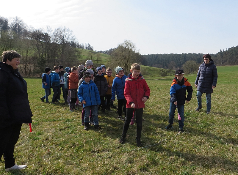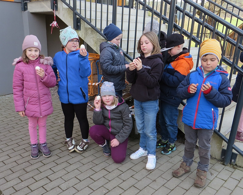 Nachdem von den Kindern ein Osterei gestaltet wurde, ging es raus auf die Wiese zum Eierwerfen.