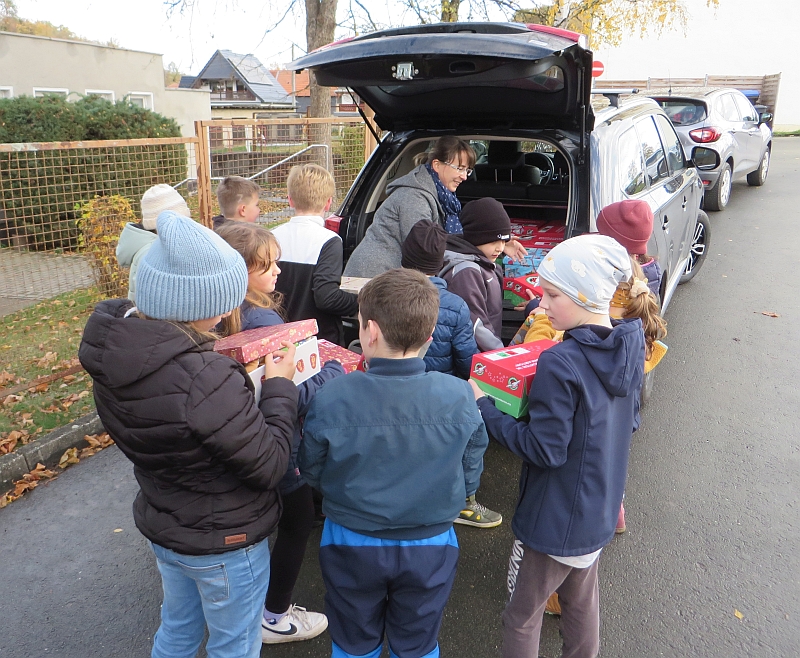Auch in diesem Jahr, hat sich die Tälerschule Ottendorf an der Aktion „Weihnachten im Schuhkarton“ beteiligt. Insgesamt 28 Pakete wurden am Freitag, den 10. November durch die Mitarbeiterin Frau Gimper vom Pfarramt Ottendorf entgegen genommen und zur Abgabestelle in Stadtroda gebracht. Hier beginnt ihre lange Reise u.a. nach Rumänien, Slowakei oder die Republik Moldau um bedürftigen Kindern einen Lichtblick zu Weihnachten zu schenken.