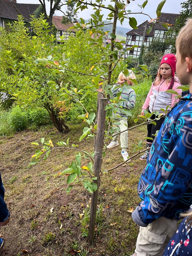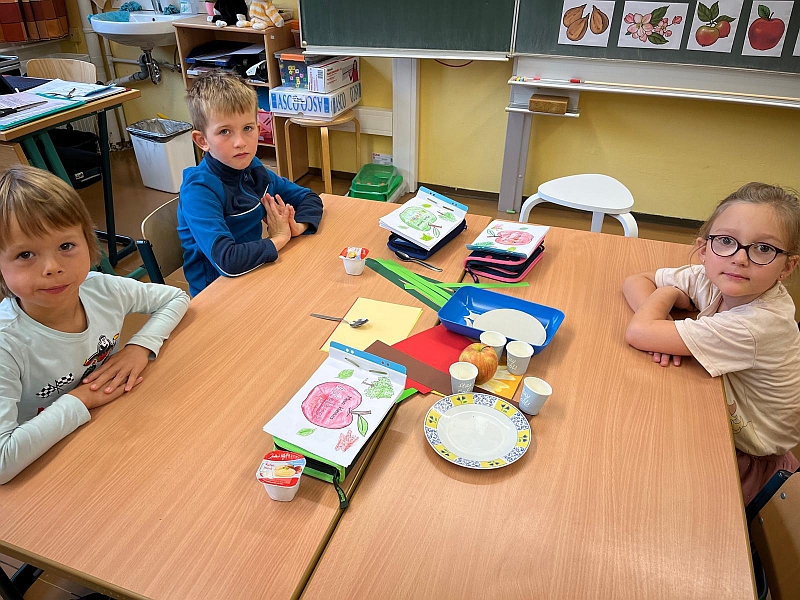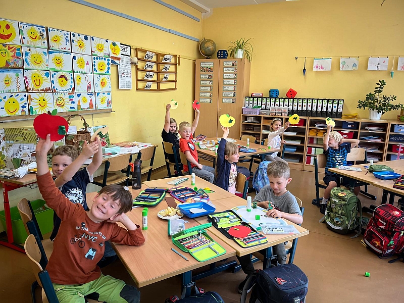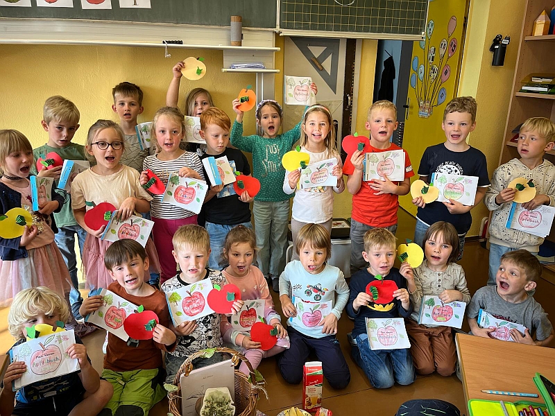 Alles über den Apfel lernten unsere Erstklässler im Verlaufe des Apfelprojektes. Im Stuhlkreis gab es Wissenswertes über Äpfel zu erfahren, ein kleines Apfelbuch wurde ausgefüllt, ein kleiner Apfel mit Wurm gebastelt und zum Abschluss ein Unterrichtsgang zum Apfelbaum in einem Ottendorfer Garten unternommen.