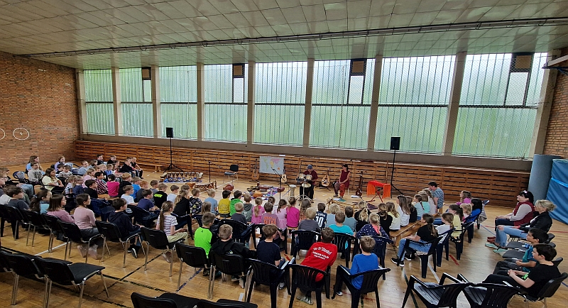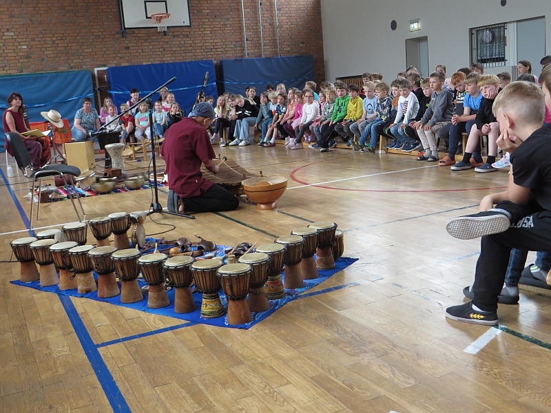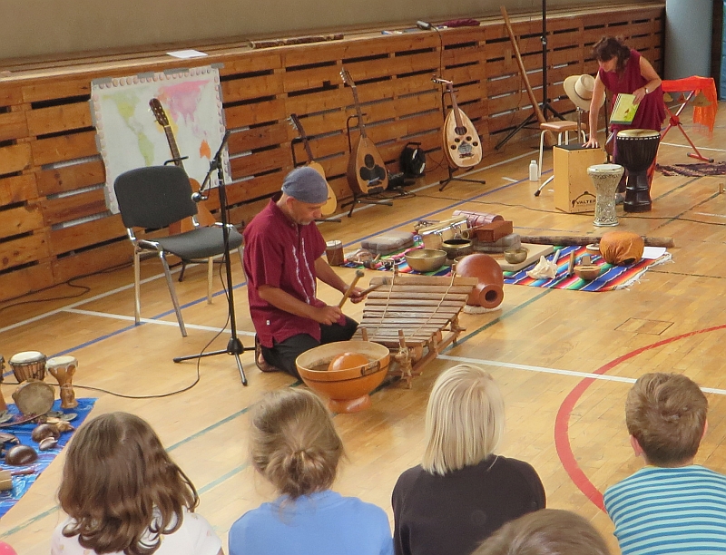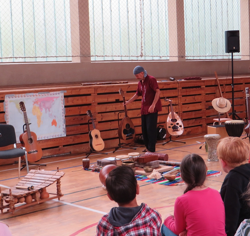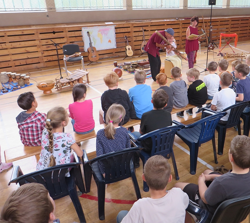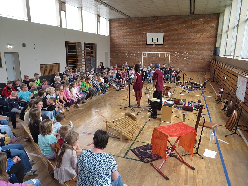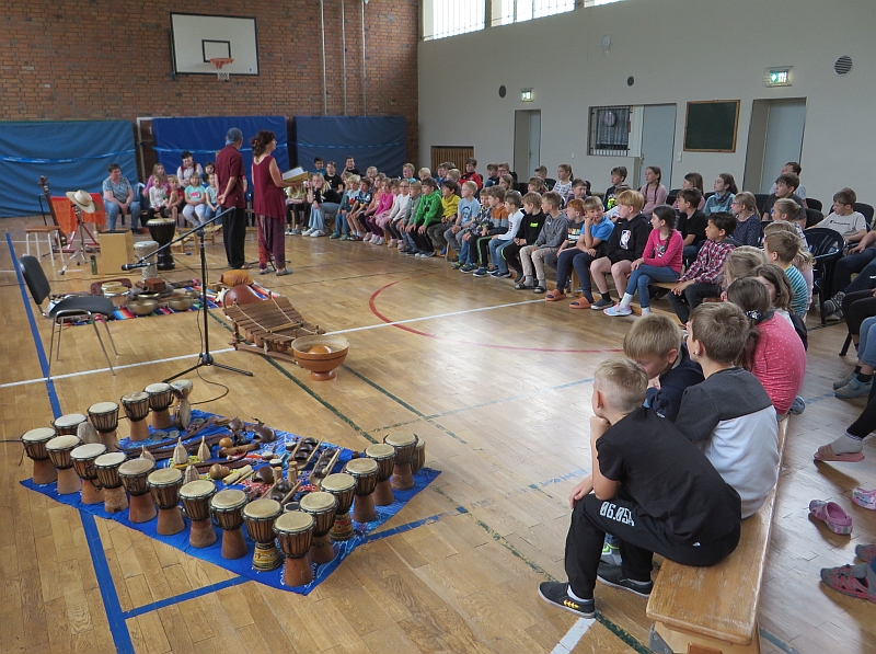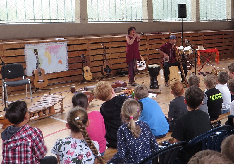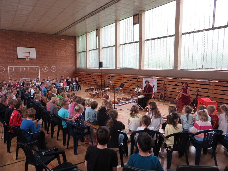 Die Schüler der Tälerschule Ottendorf unternahmen gemeinsam mit ihren Lehrern am 16.5.2025 eine musikalische Weltreise. Reiseleiter waren Alan und Conny Torres. Die beiden Künstler nahmen die Kinder mit, den Helden ihres Märchens zu folgen und dabei viele Instrumente der jeweiligen Länder kennenzulernen. Gestartet wurde in Mexiko, der Heimat von Alan Torres. Weiter führt die musikalische Reise über Afrika nach Spanien, in den Orient bis nach Indien. Bester Laune kamen natürlich alle Kinder wieder in der Turnhalle an und durften sich zum Schluss auch einmal selbst an verschiedenen traditionellen Instrumenten ausprobieren. Wir bedanken uns bei Alan und Conny Torres und bei den Besuchern der Ottendorfer Pflanzentauschbörse für deren Spende, die uns als Reisekostenzuschuss diente.