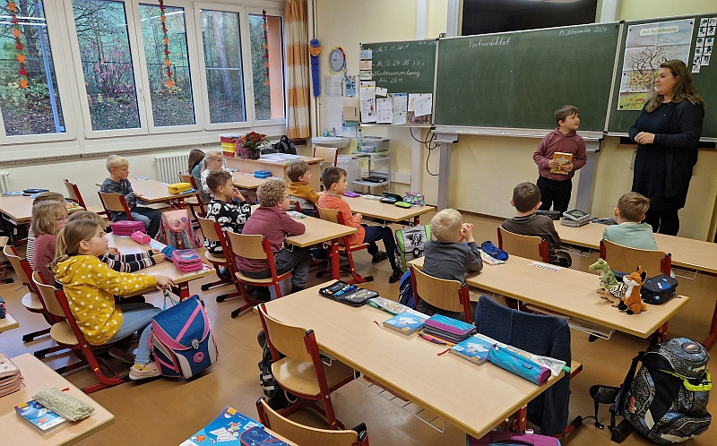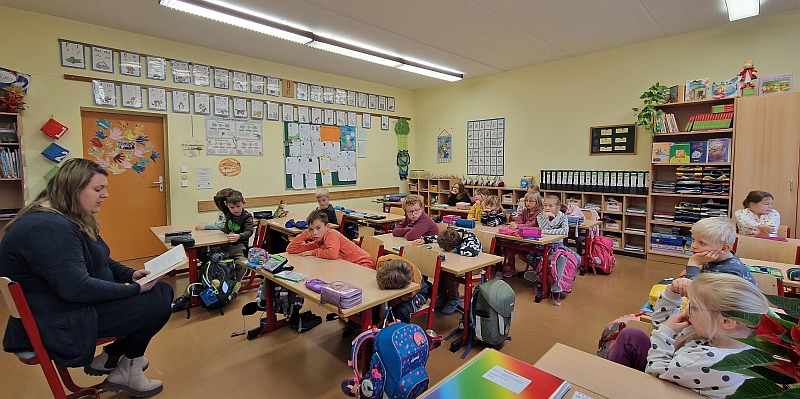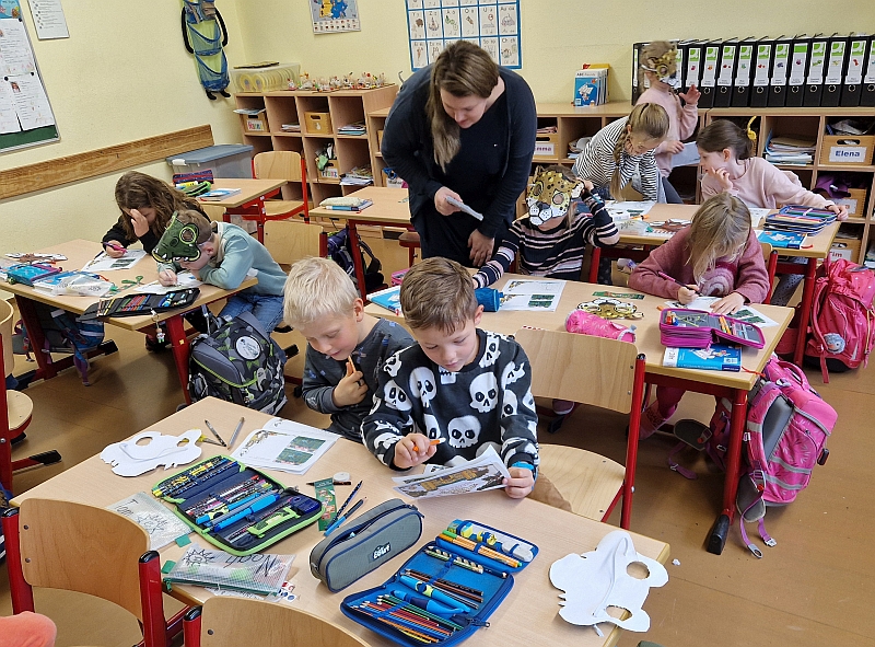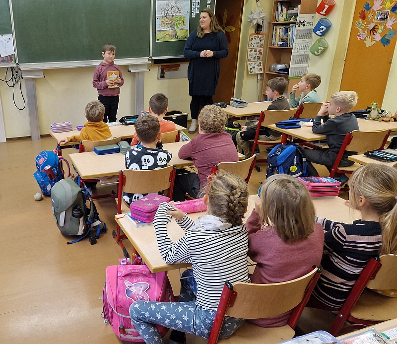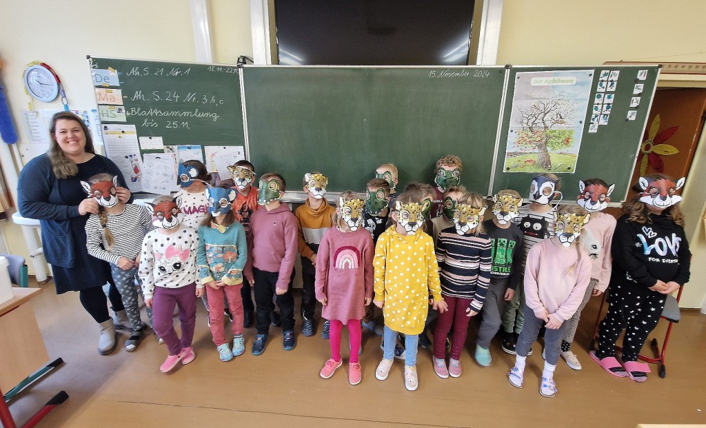 Zum Vorlesetag am 15. November 2024 kam Frau Zirnstein in die Klasse 2, um den Kindern die Buchreihe von der „Schule der magischen Tiere“ vorzustellen. Natürlich hatten alle schon einmal vorn den Helden der Buchreihe gehört, bzw. die Filme gesehen. Aus dem neuesten Band las Frau Zirnstein den Kindern vor, nachdem Leonard schon einmal die Geschichte vorstellte. Anschließend haben die Kinder noch gerätselt und eine Tiermaske gebastelt. Es hat allen viel Spaß gemacht und wir möchten uns recht herzlich bei Frau Zirnstein bedanken!