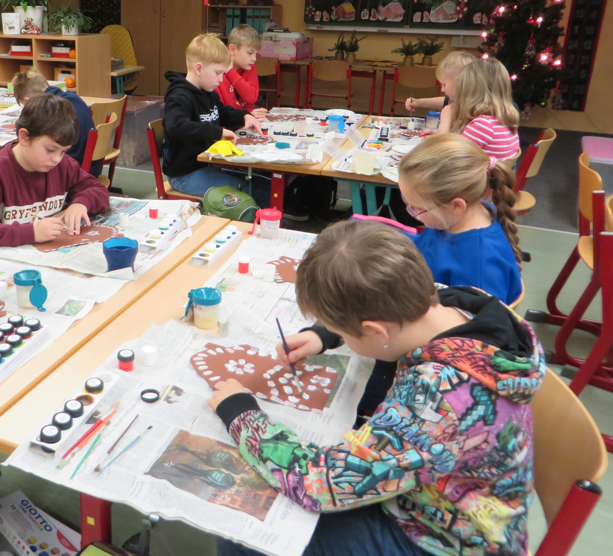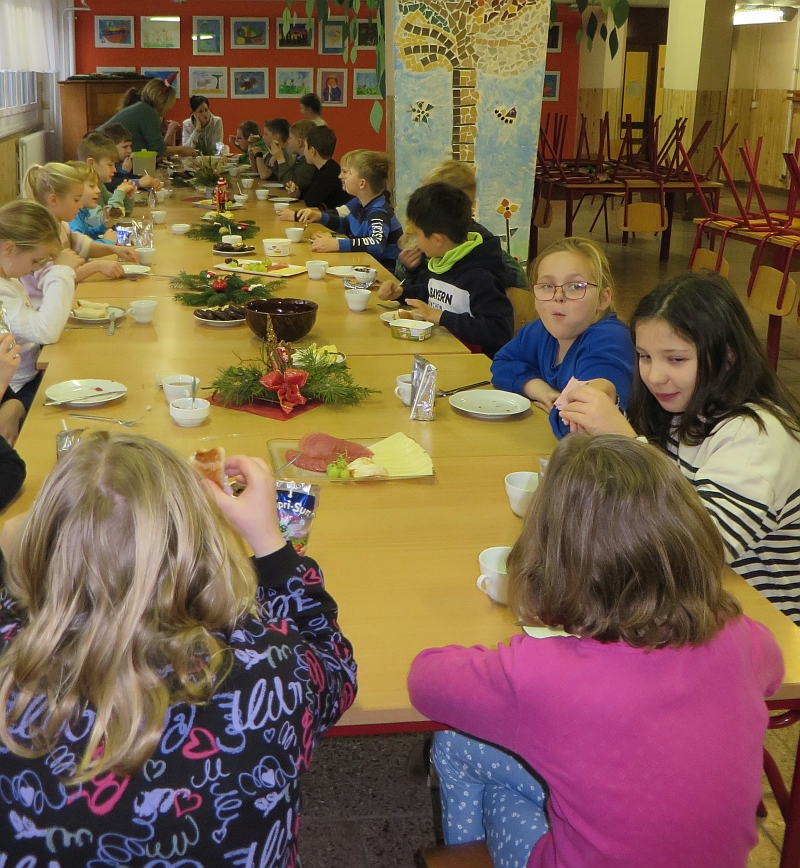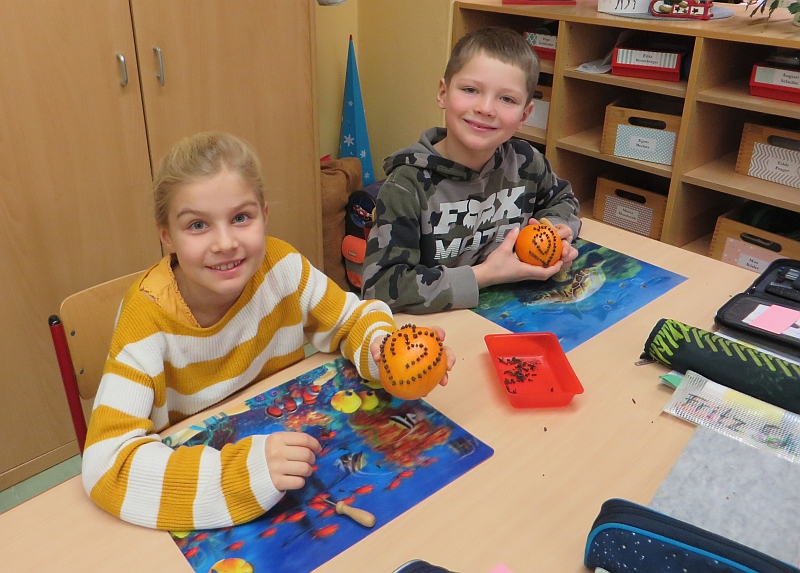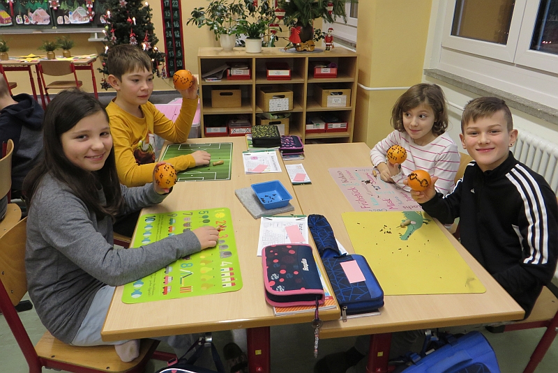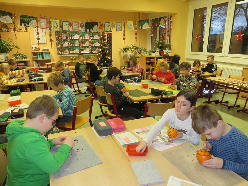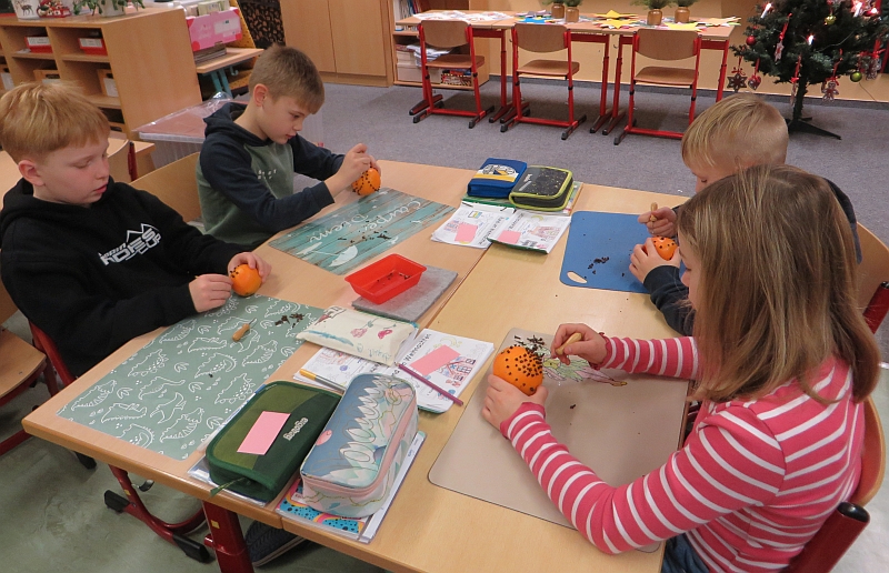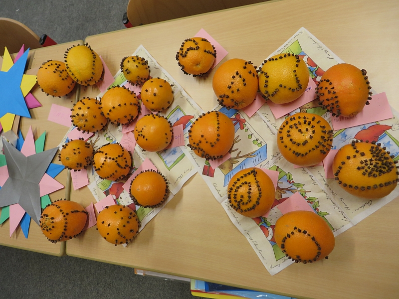In der Woche vor den Weihnachtsferien stand in Klasse 3 das Thema Weihnachten im Mittelpunkt der Projektwoche. Die Kinder gestalteten eine Weihnachtskarte, stellten Duftorangen her, lernten Weihnachtsbräuche in Mexiko kennen und dekorierten kleine Weihnachtsbäume. Ein gemeinsames Weihnachtsfrühstück durfte auch nicht fehlen.