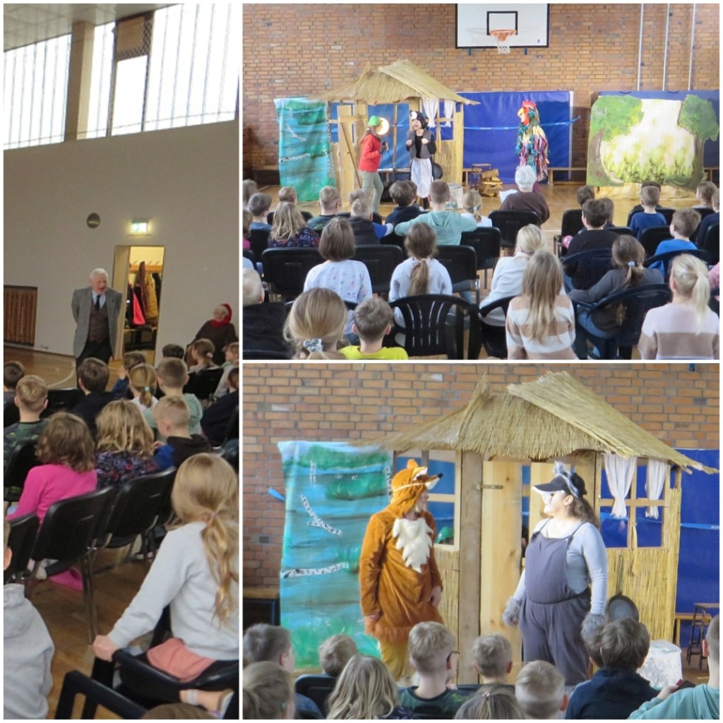 Mit dem Märchen „Das Tierhäuschen“ von Samuil Marschak war das TälerTheater am vorletzten Schultag vor den Weihnachtsferien zu Gast. So kam in diesem Jahr das traditionelle Märchenstück vor Weihnachten zu uns an die Tälerschule und die Kinder konnten die Schauspieler einmal aus nächster Nähe beobachten.