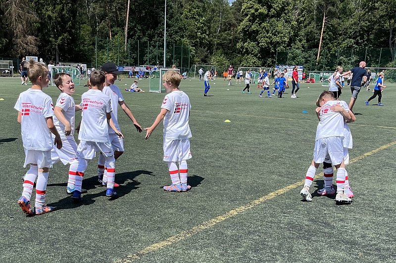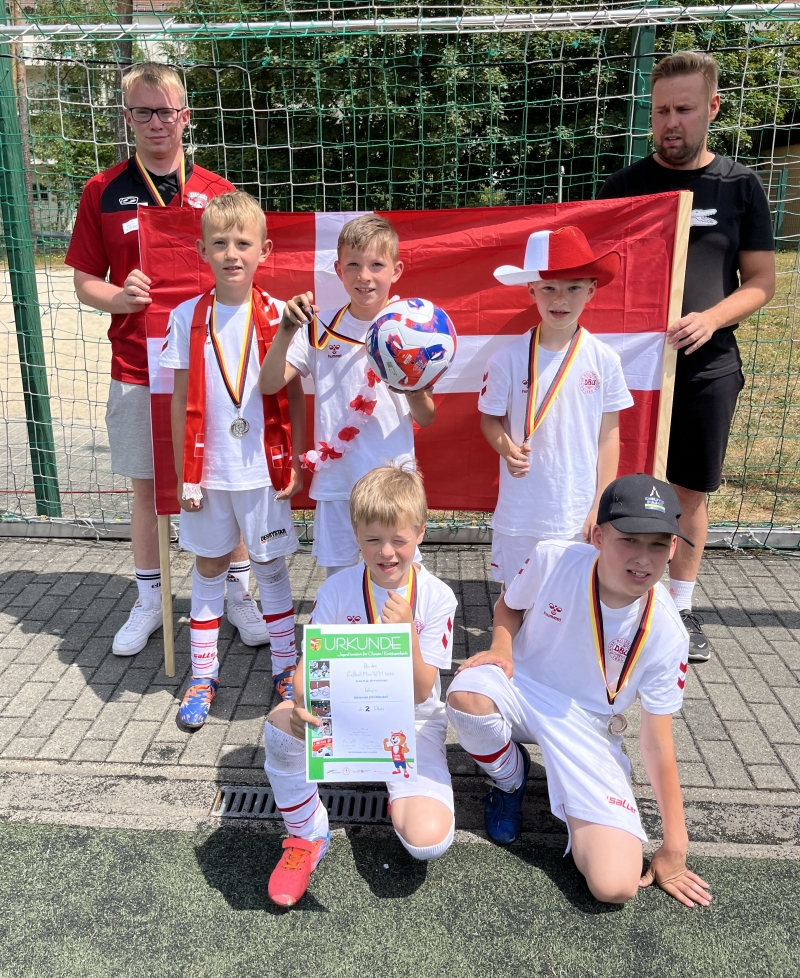 Zur Mini-WM 2023 vertraten die Tälerschule das Land Dänemark. Die Traiuner des Täler SV Ottednorf unterstützten unsere Jungs bei der Ausstattung und natürlich auch bei der Vorbereitung auf das Turnier in Bad Klosterlausnitz. Während die Jungs der Kl. 3/4 den 10. Platz von 20 Mannschaften belegte, kam unsere zweite Mannschaft ins Finale und unterlag nur ganz knapp im „Elfmeterschießen“. Nachdem die Tränen der Enntäuschung getrocknet waren, über wog dann doch die Freude über Platz 2!