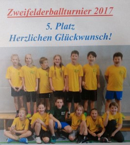 Zweifelderballturnier 2017 Mit nur einem verlorenen Spiel kehrte unsere Schulmannschaft vom Zweifelderballtunier 2017 zurück. Den 5. Platz haben sich unsere Mädchen und Jungen mit großem Einsatz erkämpft. Herzlichen Glückwunsch! Teilen mit: Auf Facebook teilen (Wird in neuem Fenster geöffnet) Facebook Auf X teilen (Wird in neuem Fenster geöffnet) X Gefällt mir Wird geladen …