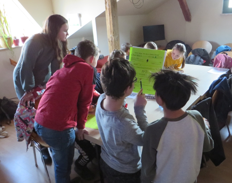 Nach einem Besuch im Museum, bei dem die einzelnen Stationen für den Audio-Guide ausgesucht wurden, folgte die Recherche zu dem jeweiligen Thema. Dazu stellte das Brehm-Schullandheim freundlicherweise seinen Seminarraum zur Verfügung. Am nächsten Tag ging es an die Erstellung der jeweiligen Texte, die in Dialogform von den Schülern aufgeschrieben wurden.