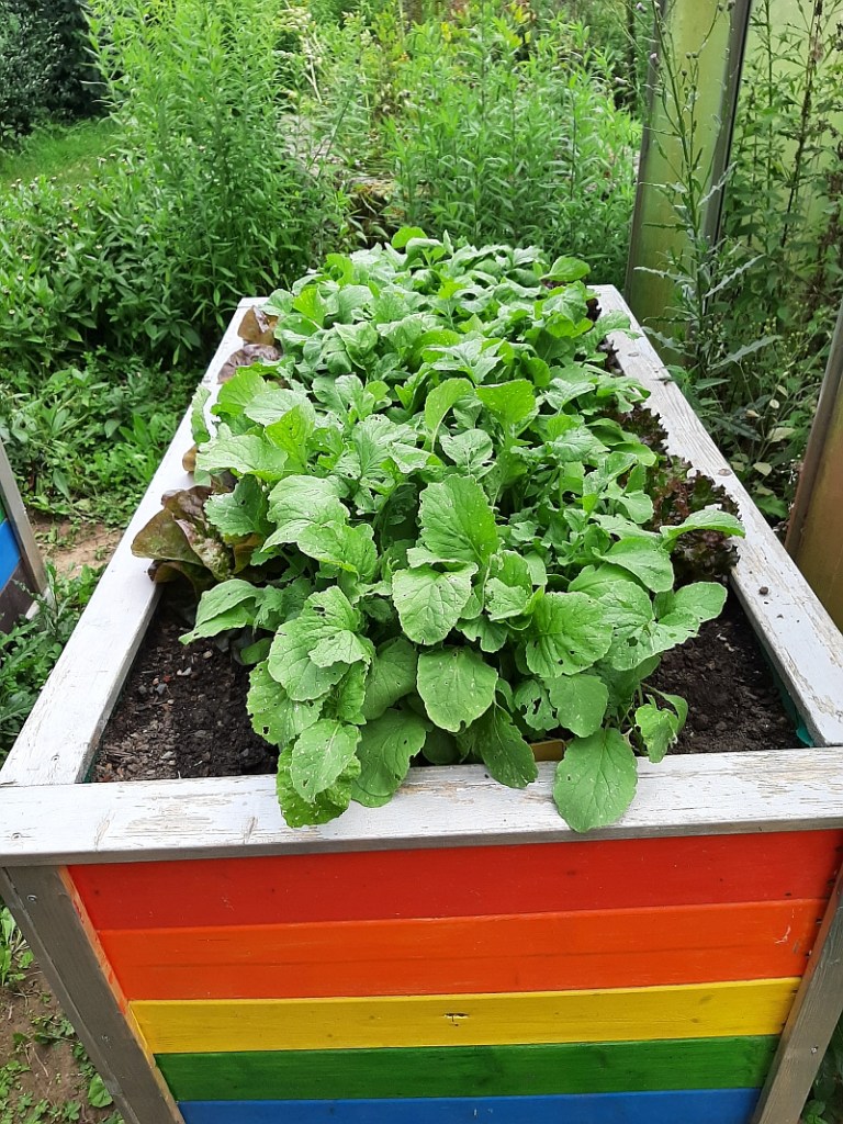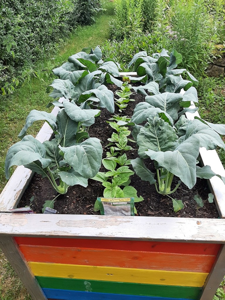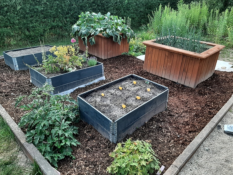 Im Anschluss beschaffte der Schulförderverein weitere 10 Hochbeete, die mit Unterstützung durch unseren MAE-Mitarbeiter dann im Laufe des Jahres gemeinsam mit den Schülern im Schulgartenunterricht aufgestellt, mit Erde befüllt und bestellt wurden. Inzwischen konnten Zucchinis, Kohlrabis, Radieschen, Zwiebeln, Sonnenblumen und Feldsalat wachsen und geerntet werden. Ein Dankeschön geht auch an den Kinderkleiderbasar, dessen Spende mit für die Anschaffung der Hochbeet verwendet wurde.