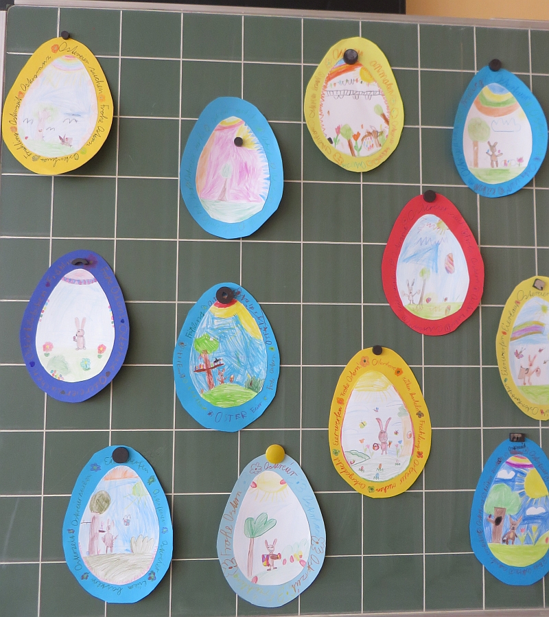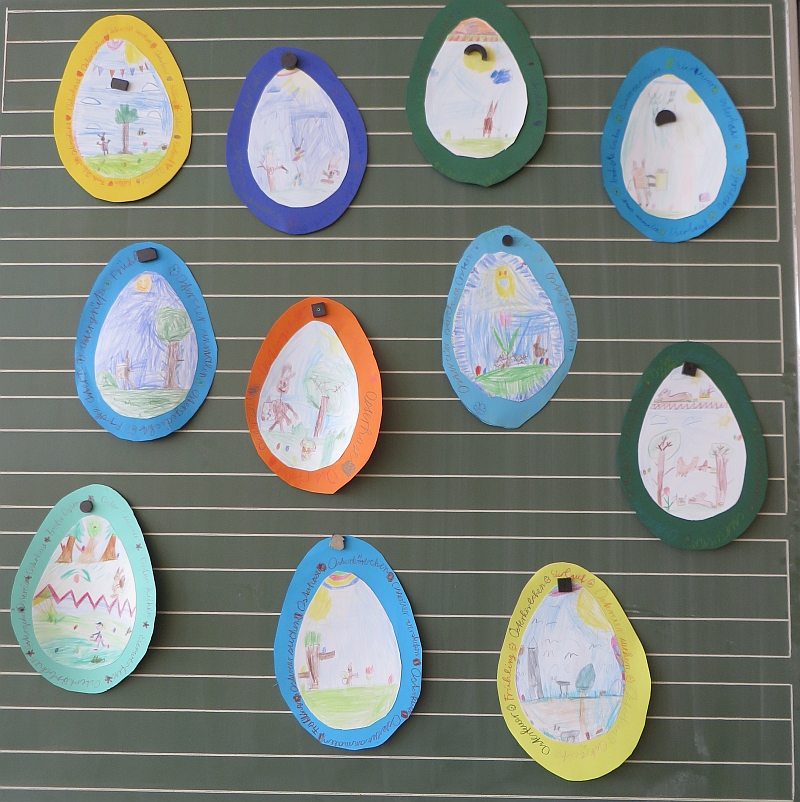 Rund um das Thema Ostern und Gesundes Frühstück ging es im Osterprojekt der Klasse 2 in der Woche vor den Osterferien. Leckeres Obst und Gemüse sowie Knäckebrot mit Frischkäse, Schnittlauch und Feldsalat (frisch geerntet aus dem Schulgarten!) gab es am ersten Projekttag zu verkosten.