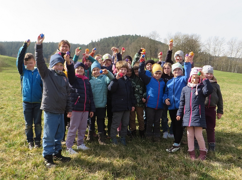 Nachdem von den Kindern ein Osterei gestaltet wurde, ging es raus auf die Wiese zum Eierwerfen.