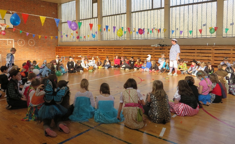Unser traditioneller Schulfasching fand auch in diesem Jahr am Rosenmontag statt. In der Turnhalle trafen sich alle Schüler in ihren Kostümen, um zu tanzen, zu spielen und zu feiern. Die Tanzmädchen des Eineborner Karnevals und