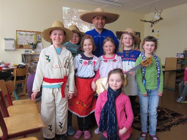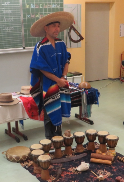 Nachdem wir als Schule zur Mini-WM schon zum zweiten Mal das Land Mexiko sein durften, nutzten wir die Gelegenheit auch wieder, Herrn Alan Torres einzuladen. Er ist ein gebürtiger Mexikaner, der in Gera lebt und mit einem kleinen Programm viel über sein Land berichten kann. Dabei kann jeder mitmachen, musizieren und tanzen, was den Kindern immer viel Spaß bereitet. Link zu den Fotos von Klasse 2 und Klasse 3