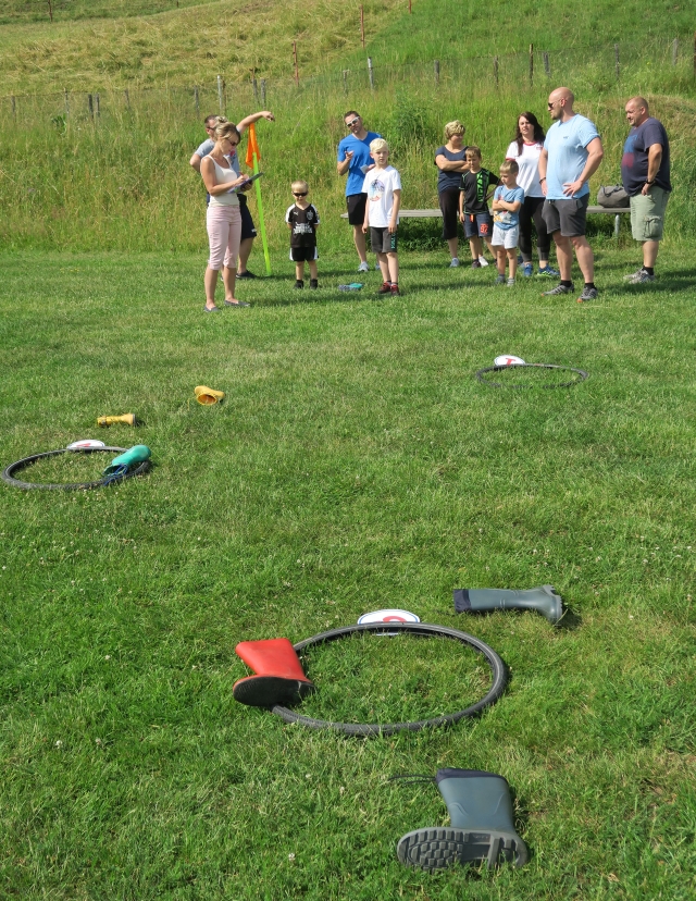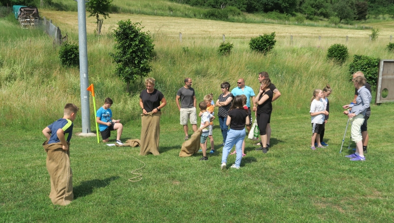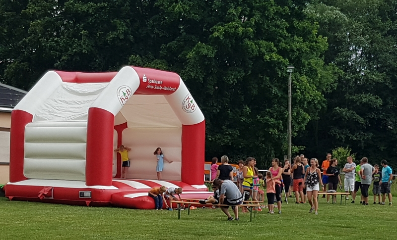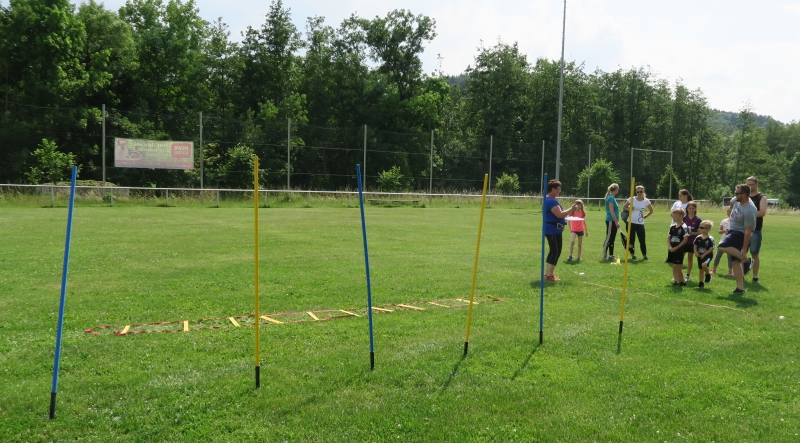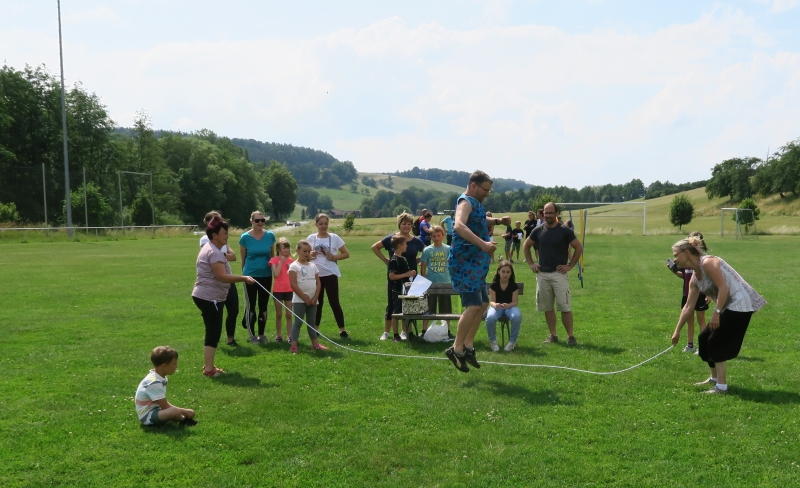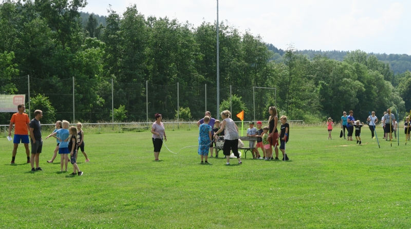 Zu diesem standen nun nicht nur die Hüpfburg, sondern auch sportliche Aktivitäten an 6 Stationen bereit. Jede Familie trat als Mannschaft beim Seilspringen, Schlängellauf, Gummistiefelzielwurf, beim Ballparcour, Torwandschießen und bei einer Geschicklichkeitsstaffel an.